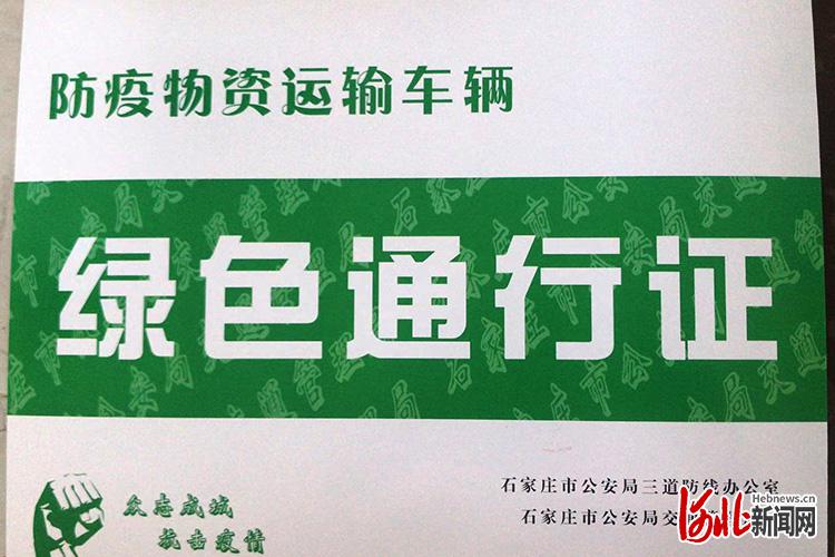 石家莊市為防疫物資運(yùn)輸車輛開具綠色通行證。圖片源自“市場保供群”
