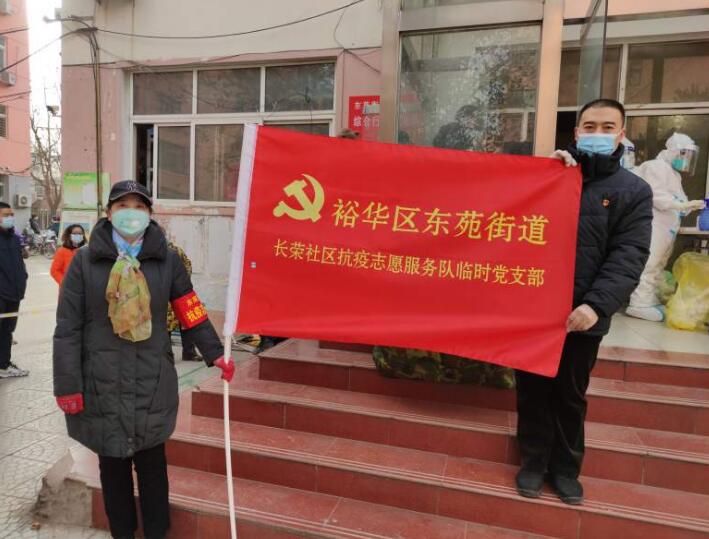 “長(zhǎng)榮社區(qū)抗疫志愿服務(wù)隊(duì)臨時(shí)黨支部”發(fā)揮戰(zhàn)斗堡壘作用。