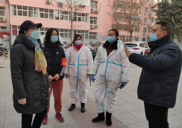社區(qū)黨員干部在檢查防控措施落實(shí)情況。