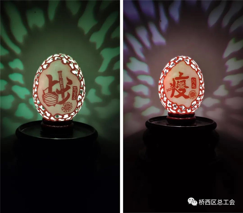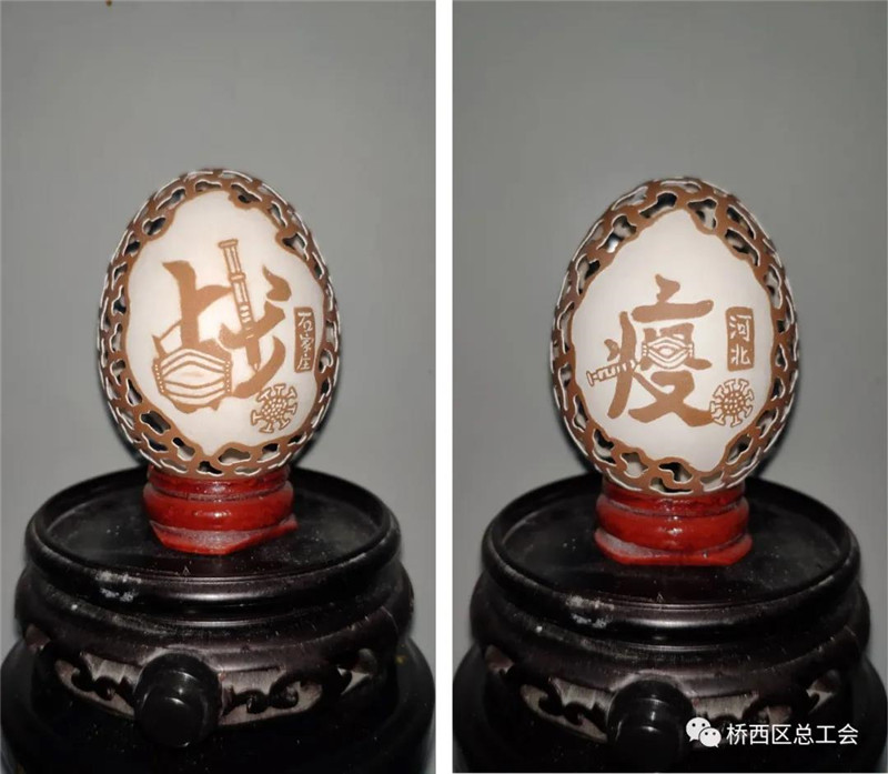 張曉賀是河北省石家莊市橋西區(qū)非遺蛋雕代表性傳承人,他積極響應(yīng)號(hào)召,早早把開在橋西區(qū)友誼街道誼北路上的非遺文化蛋雕工作室關(guān)停,在居家抗疫的日子里,他秉承匠人精神,不忘利用手中的“武器”,以藝戰(zhàn)“疫”。希望通過自己的作品,凝聚起人民群眾抗擊疫情的強(qiáng)大精神力量,助力石家莊人民戰(zhàn)勝疫情,重啟美好新生活。