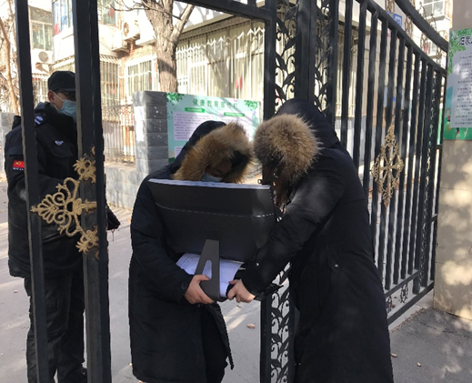疫情來(lái)的突然,1月6日6:00,多數(shù)坐席都被困在小區(qū)。呂立東、表曉彤兩位伙伴臨危受命,負(fù)責(zé)為那些被困小區(qū)的伙伴送去電腦。