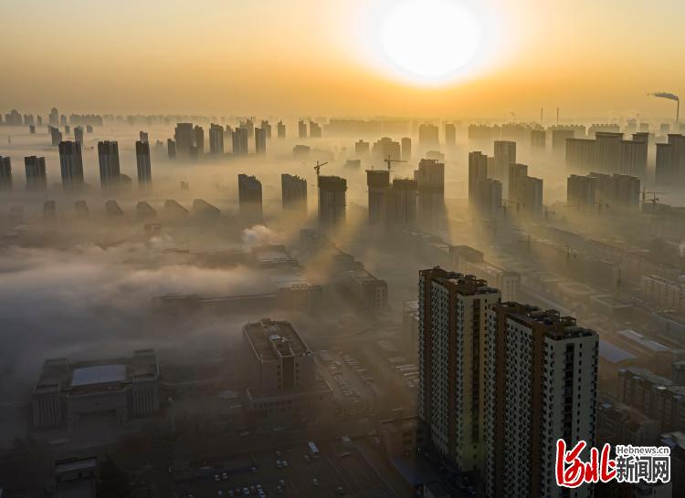 1月26日清晨拍攝的河北省石家莊市市區(qū)。 河北日?qǐng)?bào)通訊員馬利民攝
