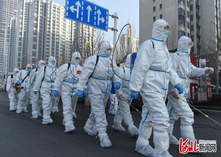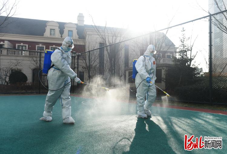 1月26日,石家莊市裕華區(qū)消防救援大隊(duì)在轄區(qū)社區(qū)內(nèi)進(jìn)行消殺作業(yè)。河北日報(bào)記者史晟全攝