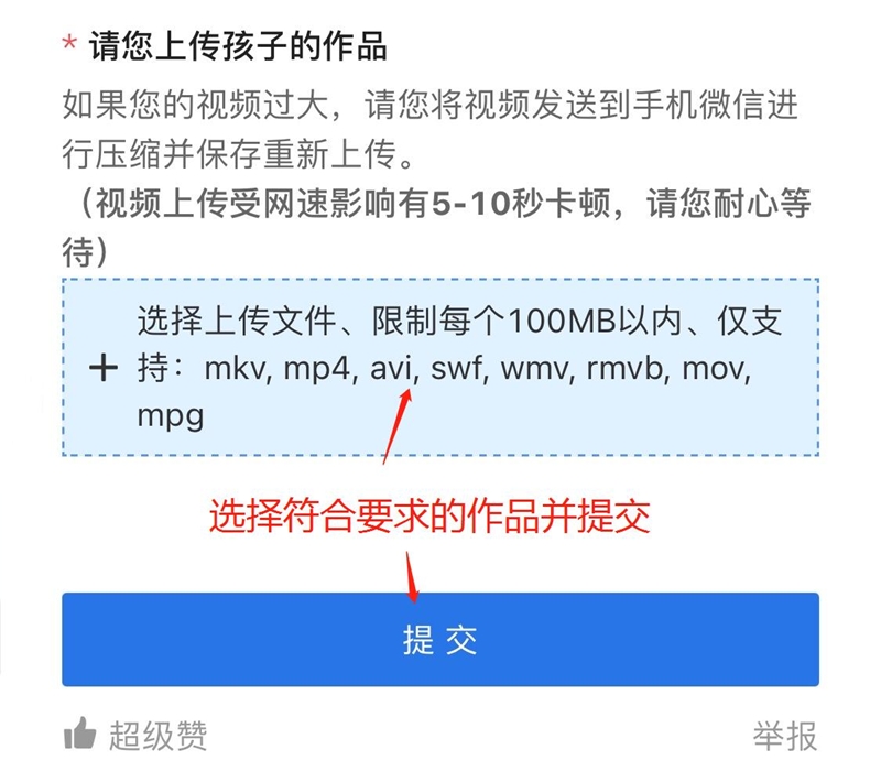 1. 應(yīng)當為視頻,時間應(yīng)為1分鐘以內(nèi)(每個視頻≤100MB)。