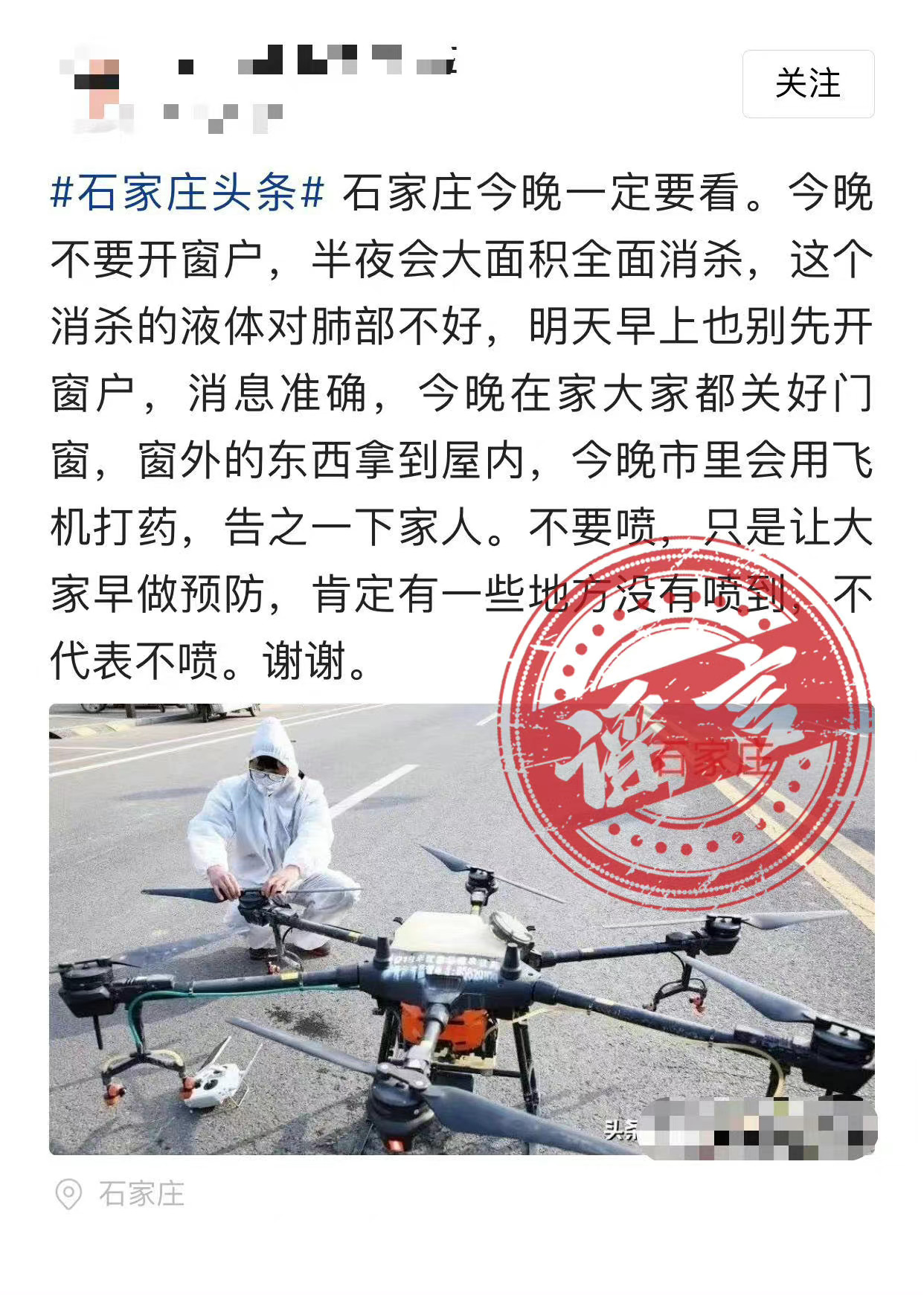 石家莊半夜大面積消殺?不要開窗戶?假的!