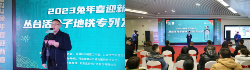 1月13日,值此新春佳節(jié)即將到來(lái)之際,由石家莊市書(shū)法家協(xié)會(huì)、石家莊市軌道交通集團(tuán)有限責(zé)任公司共同主辦,河北邯鄲叢臺(tái)酒業(yè)股份有限公司協(xié)辦,石家莊君悅廣告股份有限公司承辦的2023兔年喜迎新春“叢臺(tái)活分子”地鐵專列發(fā)車(chē)儀式在石家莊地鐵新百?gòu)V場(chǎng)站圓滿舉辦。各組織單位領(lǐng)導(dǎo)紛紛出席此次活動(dòng)。