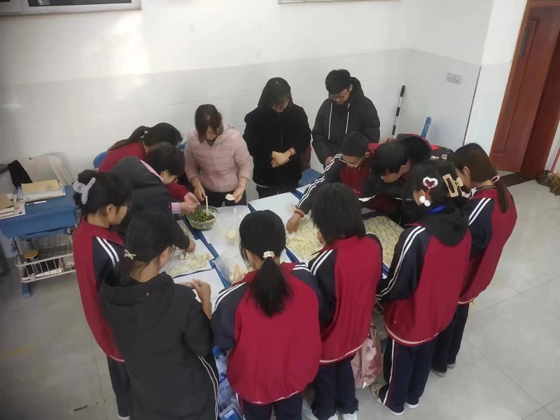 “和老師們、同學(xué)們?cè)谝黄鸢溩、吃餃子,就像一大家子一樣,真是太溫馨了!”一位學(xué)生在教室里邊包餃子邊興奮地說。
