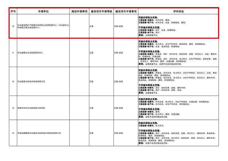 根據(jù)中國水利水電勘測設(shè)計(jì)協(xié)會(huì)發(fā)布的《關(guān)于2023年水資源論證和水文、水資源調(diào)查評(píng)價(jià)單位水平評(píng)價(jià)評(píng)審結(jié)果的公示》顯示,國土中心的“地表水:水利水電、建筑”和“地下水:水利水電、冶金、機(jī)械制造、建筑”共六個(gè)分項(xiàng)的資質(zhì)延續(xù)申報(bào)成功。
