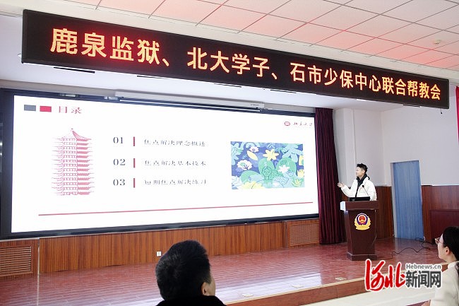 北京大學(xué)“服刑人員未成年人子女幫扶”公益小組為服刑人員帶來了社會工作的專業(yè)課程,幫助他們更好地進(jìn)行心理改造。小組成員、北京大學(xué)社會學(xué)系的劉桐樹同學(xué)對焦點(diǎn)問題解決進(jìn)行了詳細(xì)講解。