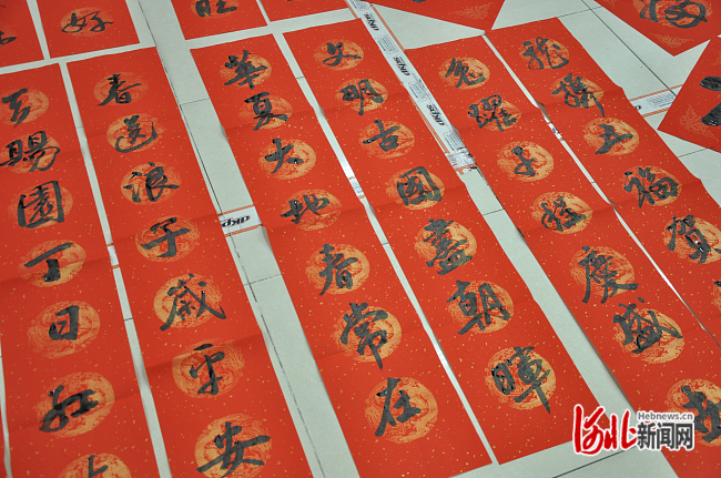 活動(dòng)當(dāng)天,幾位書法家現(xiàn)場(chǎng)揮毫潑墨,為到場(chǎng)民警及服刑人員書寫春聯(lián)、福字,送上新春的祝福。短短兩個(gè)小時(shí),書法家們一氣呵成,書寫了100多副春聯(lián)和100多個(gè)“!弊,讓在場(chǎng)人員連連稱贊。