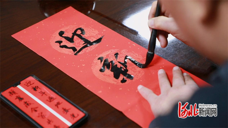 工作室的書法家們現(xiàn)場揮毫潑墨,將一副副飽含祝福的春聯(lián)和一張張福字送到民警手中,表達對他們的敬意。通訊員曹曉麗攝
