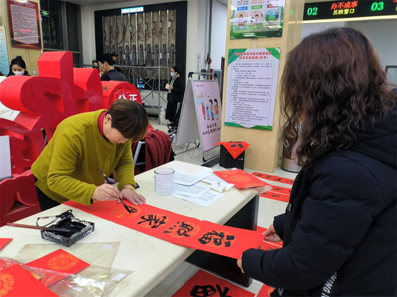 為營造歡樂喜慶的新春氣氛,弘揚中華民族優(yōu)秀傳統(tǒng)文化,1月18日上午,石家莊裕華區(qū)行政審批局聯(lián)合裕華區(qū)書法美術(shù)家協(xié)會、天友書城在裕華區(qū)政務服務大廳開展“迎新春 送祝!敝黝}活動,為到政務服務大廳辦事的群眾送上春聯(lián)和新春祝福。