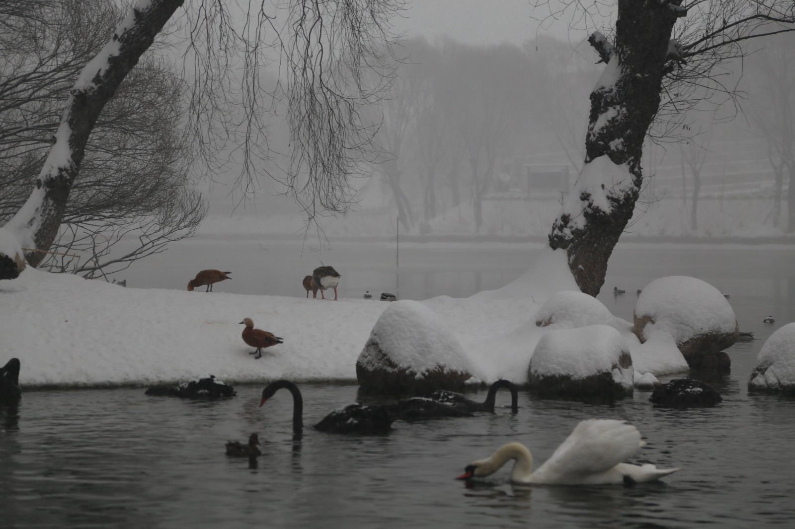 雪后的天鵝湖更顯靜謐,天鵝在湖面上游弋,與岸上的雪景交相輝映,仿佛是寒冷冬天里的一份溫暖陽光。