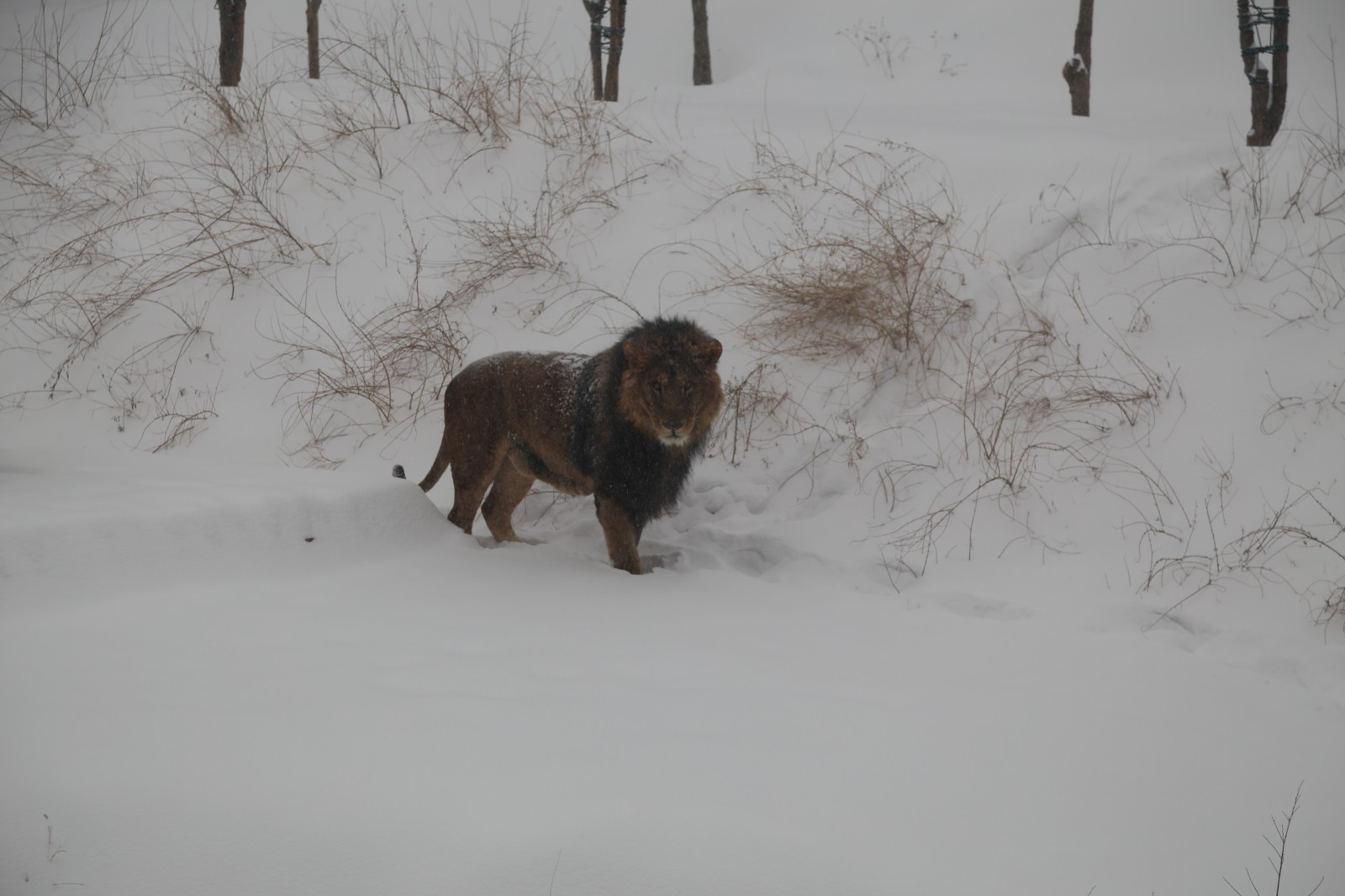 在獅虎谷,北極狼在雪地里來回踱著步子,留下一串串腳印,銀白色的毛發(fā)與雪景相融合,仿佛是這片雪原中的守望者;孟加拉虎寧靜地趴臥在雪地上,白色的皮毛與周圍的雪景融為一體,透出高貴與神秘;非洲獅則開啟了雪中漫步模式,金黃色的鬃毛顯得尤為奪目。