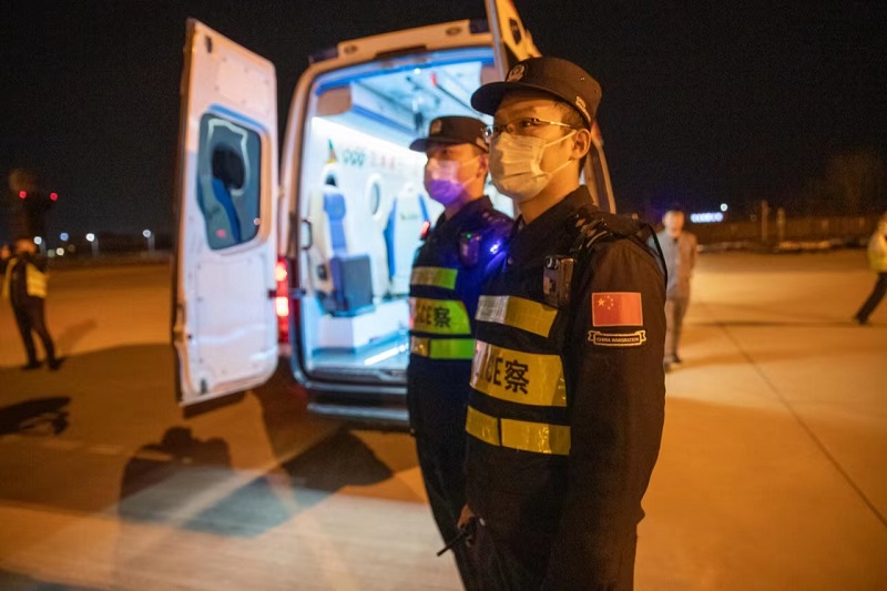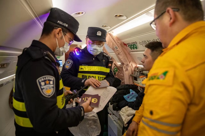 石家莊邊檢站第一時間啟動緊急救助預案,開通“生命救助通道”,暢通與航空公司聯絡,了解掌握航班動態(tài)、旅客情況,選派經驗豐富的民警負責專項勤務,靠前抵達停機坪為旅客進行人證對照。