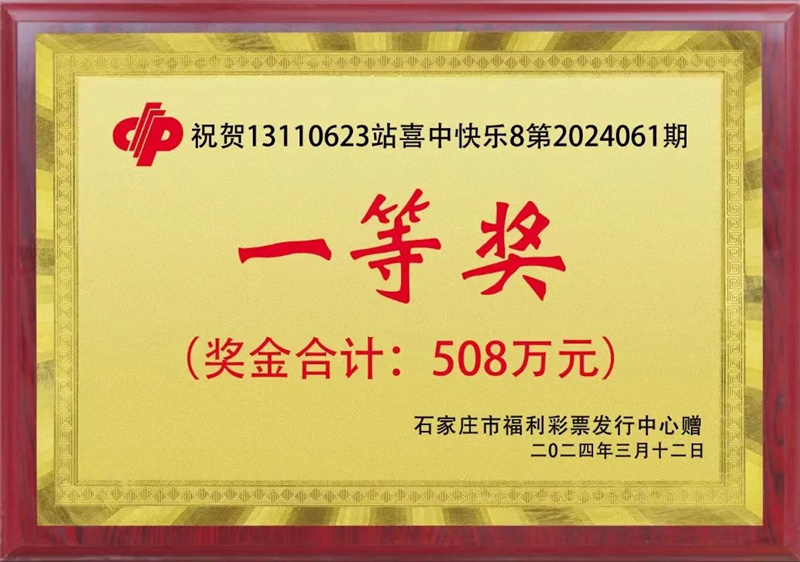 得知石家莊中出了快樂8一等獎,3月12日,石家莊市福利彩票發(fā)行中心專門制作了喜報和一等獎獎牌、條幅表示祝賀!.