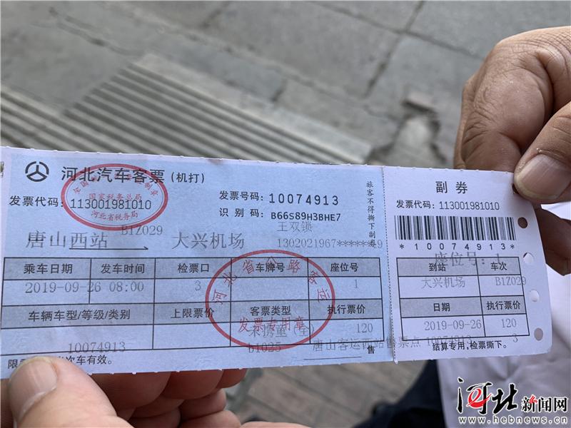 9月26日,唐山至大興國際機(jī)場(chǎng)客運(yùn)專線開通。圖為乘客展示首發(fā)專線車票。