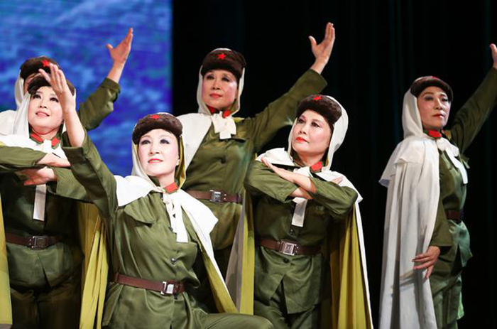 本場晚會的導(dǎo)演和主創(chuàng)、唐山市老年大學(xué)藝術(shù)團團長、今年70歲的王美艷就是他們當(dāng)中的典型代表。21年來,她通過看電視、光盤等自學(xué),提升舞蹈編創(chuàng)和表演水平,教出的老年學(xué)員近四千人,編創(chuàng)出大量富有時代特色和唐山地方文藝特色的節(jié)目,獲得多個獎項并應(yīng)邀到北京、長春、南京、煙臺、石家莊等地演出,展現(xiàn)了新時代唐山中老年人的精神風(fēng)貌。