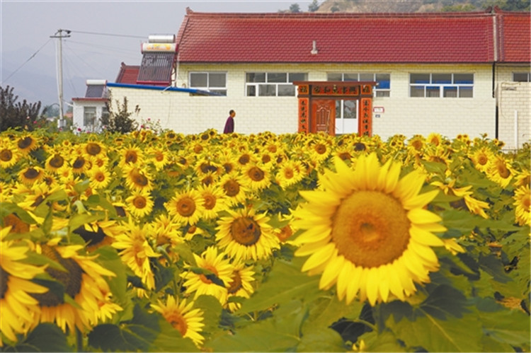 近年來,遷西縣結(jié)合農(nóng)村人居環(huán)境整治行動,引領(lǐng)農(nóng)戶對庭院和戶前屋后空地進行充分利用,在打造美麗風(fēng)景的同時,拓展了增收渠道,使曾經(jīng)臟亂的“方寸之地”成為“創(chuàng)收之所”。據(jù)統(tǒng)計,僅栽植油葵一項,每畝可收入4000元。圖為遷西縣三屯營鎮(zhèn)高家莊村,一村民從自家門前走過。 記者董鈞攝影報道