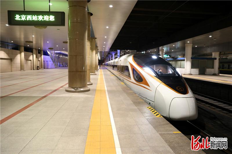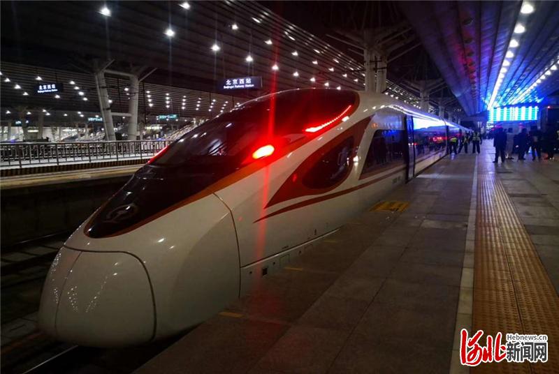 11月1日5時2分,首趟試點“復(fù)興號”動車組整列裝運快件的DJ5917次列車從北京西站發(fā)出,滿載著40噸快件開往漢口站,全程5小時18分鐘。中車唐山公司供圖
