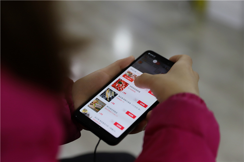 2月8日,河北省唐山市海港經(jīng)濟開發(fā)區(qū)市民通過手機在網(wǎng)絡(luò)平臺下單購買年貨商品。