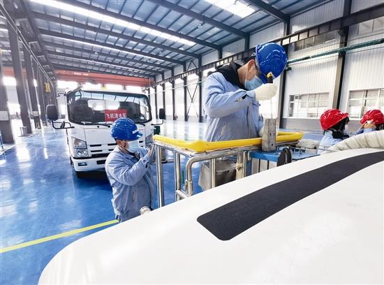圖為在園區(qū)內(nèi)民用航空裝備特種車輛制造基地,工作人員正在組裝飛機(jī)污水車。記者呂光宇攝影報(bào)道