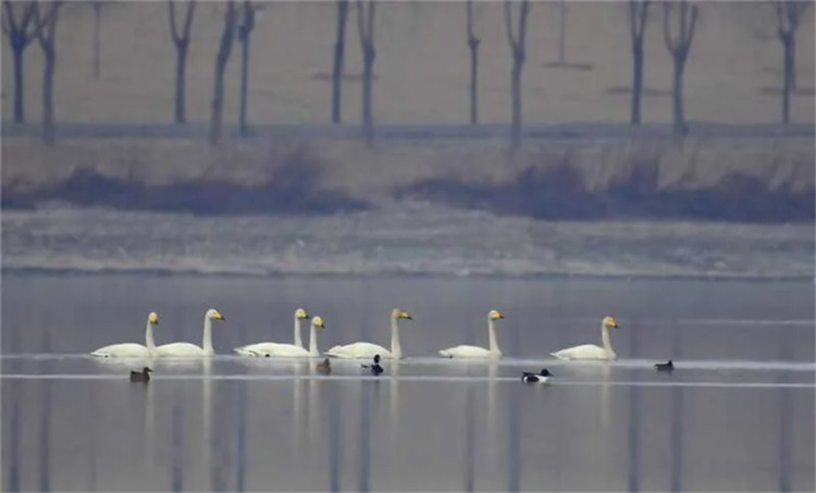 連日來,在河北省遷安市黃臺湖風景區(qū),成群結隊的天鵝時而展翅翱翔,鳴叫如歌,聲聲清脆;時而碧波漫步,翩翩起舞,亭亭玉立;時而水中嬉戲,拍水逐波,如葉葉扁舟;時而悠閑游蕩,隨風漂流,似朵朵白絮;時而挺脖昂首,機警敏銳,像勇猛戰(zhàn)士;時而曲頸低頭,輕盈柔美,若嫻雅仙子……它們與碧綠如玉的湖水、現代大氣的城市融匯在一起,呈現出一幅山清水秀鳥歡愉的自然生態(tài)美景圖,為美麗水城更增添了一道獨特、靈動的風景線。