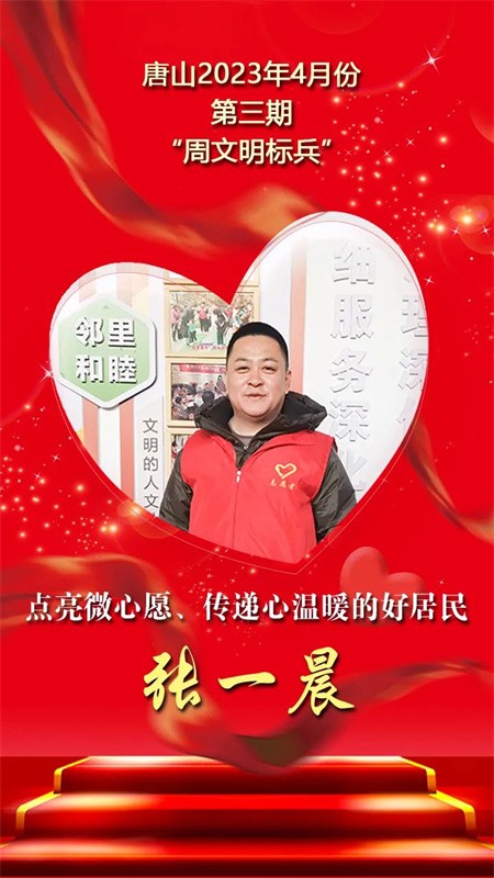 日前,唐山市“文明標(biāo)兵”評選發(fā)布組委會辦公室公布了2023年4月份第三期“周文明標(biāo)兵”名單。他們是:
