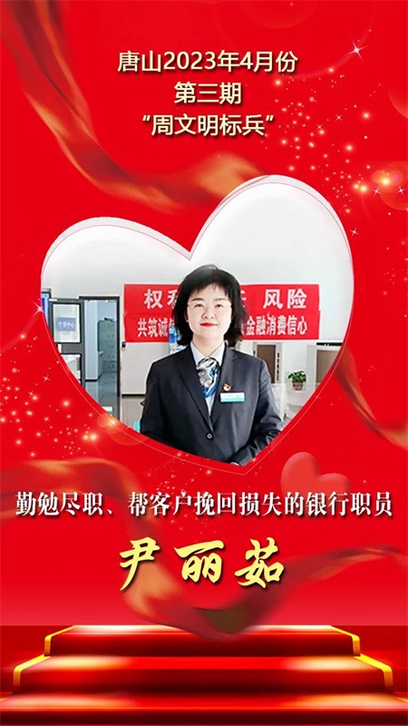 尹麗茹,農(nóng)業(yè)銀行唐山京唐港支行營業(yè)室網(wǎng)點主任。她始終以“想客戶所想、急客戶所急”為工作準(zhǔn)則,只要一個電話,就第一時間和同事們一起,為殘障和特殊群體提供上門服務(wù)。每次遇到匯款業(yè)務(wù),尹麗茹都會多次提示客戶和具體指導(dǎo),并成功堵截了7筆電信詐騙。一次下班后,看到柜員機(jī)附近一位客戶神色匆忙、尋求幫助,根據(jù)客戶的描述她發(fā)現(xiàn)這是一起典型的電信詐騙,成功勸說后尹麗茹陪同客戶報了案。尹麗茹還積極參與金融服務(wù)鄉(xiāng)村振興和“大幫扶、大包聯(lián)、大服務(wù)”行動,深入種植大棚等農(nóng)村基層投放惠農(nóng)貸款,解決了農(nóng)戶的燃眉之急。
