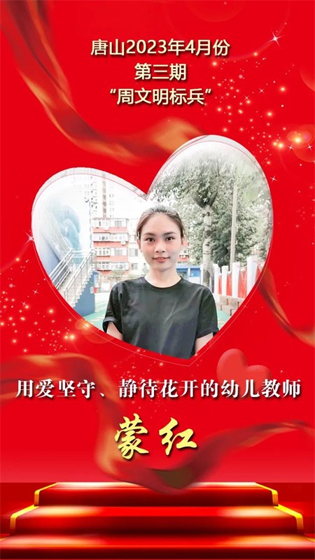 蒙紅,唐山師范學(xué)院附屬幼兒園教師。在懷孕晚期,她克服恥骨疼痛等困難一直堅守在崗位,直到生產(chǎn)前一天還在精心錄制各個專題活動。她借助網(wǎng)絡(luò)平臺掌握教育動態(tài),與經(jīng)驗豐富的老教師切磋交流實踐經(jīng)驗,不斷為自己“充電”。做一名研究型教師是蒙紅追求的目標(biāo),通過夜以繼日地研磨,她的業(yè)務(wù)水平得到了迅速提升,作品獲得了第二屆全國優(yōu)秀微課活動一等獎、優(yōu)秀教師指導(dǎo)獎。生活中的她,志愿做“愛的播撒者”,周末經(jīng)常給養(yǎng)老院的孤寡老人帶去食品和生活用品,給他們洗頭、洗衣服,陪著老人聊天散步。作為一名90后的青年教師,蒙紅始終本著熱愛幼兒的初心,忠誠教育事業(yè)的誠心,用愛堅守,靜待花開。