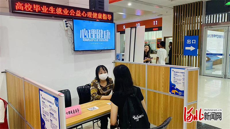 在“高校畢業(yè)生就業(yè)公益心理健康指導(dǎo)”服務(wù)處,求職者正在咨詢(xún)就業(yè)問(wèn)題。通訊員王瑩攝