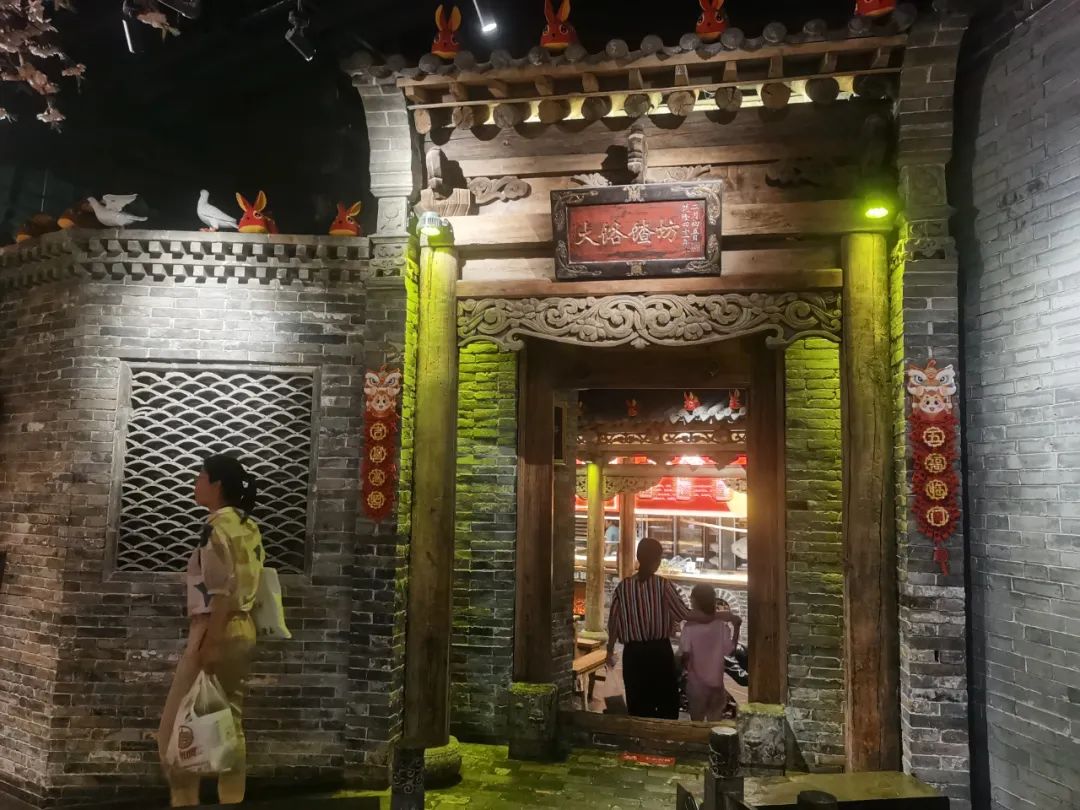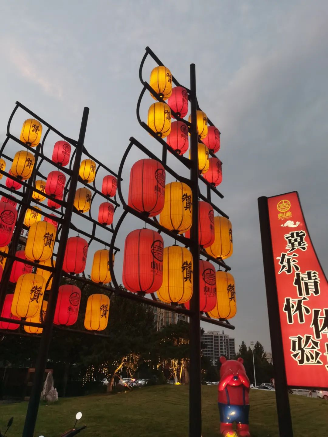 晚上六點(diǎn),到達(dá)“唐山宴”西門,高大氣派的門樓引人注目。門前兩邊紅燈高掛,讓人頓感溫馨,富含生活氣息的雕塑展示著傳統(tǒng)美食的制作場(chǎng)景。吹糖人、糖葫蘆、爆米花等等,栩栩如生,勾起很多人往日回憶。