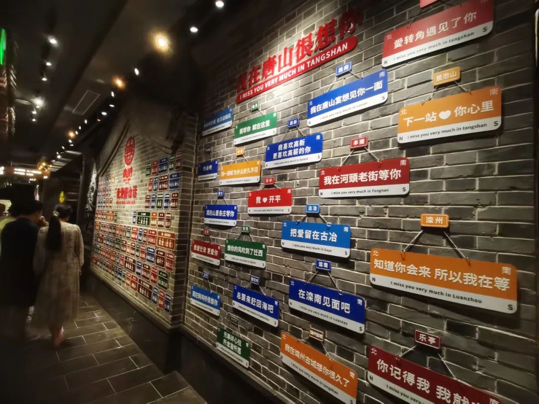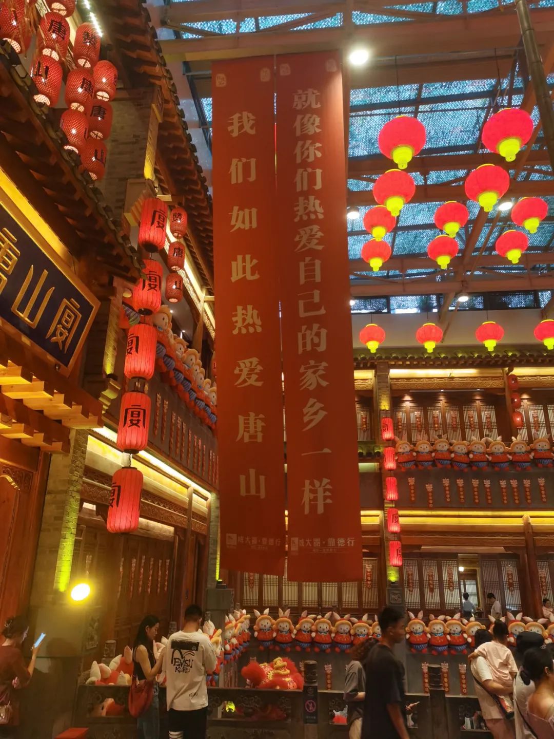 乘電梯上樓,空中飄下兩幅長(zhǎng)長(zhǎng)的豎幅,印著過(guò)目難忘的語(yǔ)言:“我們?nèi)绱藷釔?ài)唐山,就像你們熱愛(ài)自己的家鄉(xiāng)一樣”。瞬間拉近了人的距離,不管是本地人,還是外來(lái)游客,走進(jìn)“唐山宴”的一刻,已經(jīng)都融進(jìn)濃烈的情懷之中。