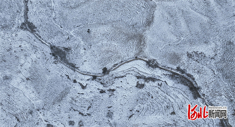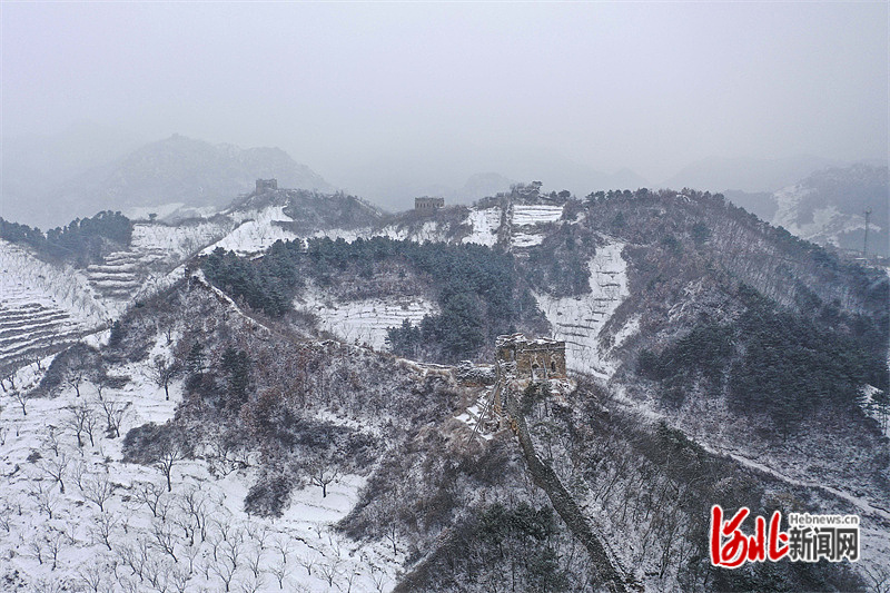 12月14日,在河北省遵化市拍攝的長(zhǎng)城雪景(無(wú)人機(jī)照片)。