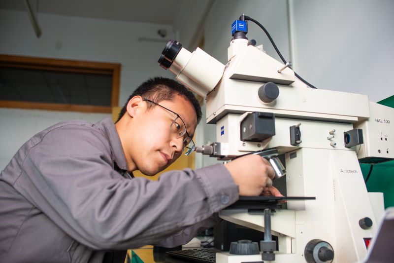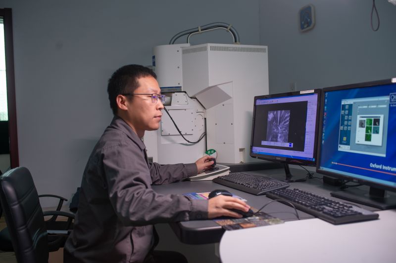 圖為11月8日,石曉偉在對樣品進(jìn)行電鏡掃描。劉鑫峰攝