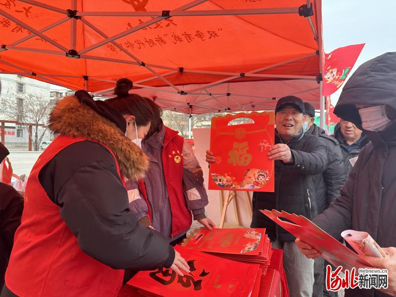 活動現(xiàn)場為居民們發(fā)放裝有春聯(lián)、福字的新春福袋。