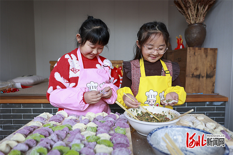 唐山市豐南區(qū)胥各莊鎮(zhèn)蠻子坨村小朋友在包餃子。