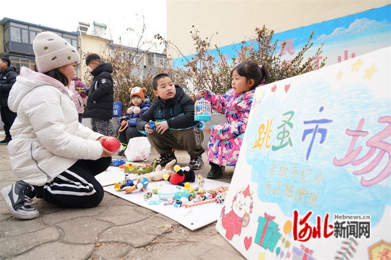 圖為1月30日活動現(xiàn)場,社區(qū)小居民在兒童年貨跳蚤市場挑選物品。