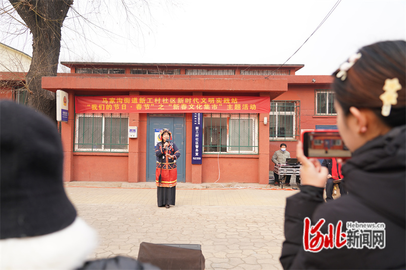 圖為1月30日,活動現(xiàn)場,社區(qū)工作人員正在表演節(jié)目。