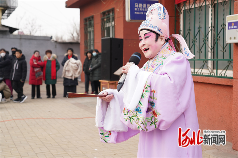 圖為1月30日活動現(xiàn)場,社區(qū)文藝志愿者正在表演傳統(tǒng)戲曲節(jié)目。