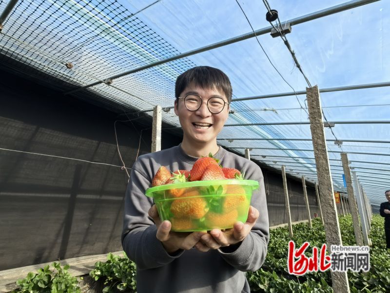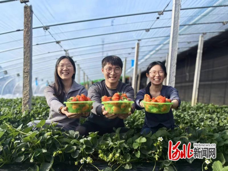 圖為河北省樂(lè)亭縣中堡鎮(zhèn)李現(xiàn)莊村草莓種植基地直播帶貨現(xiàn)場(chǎng)。