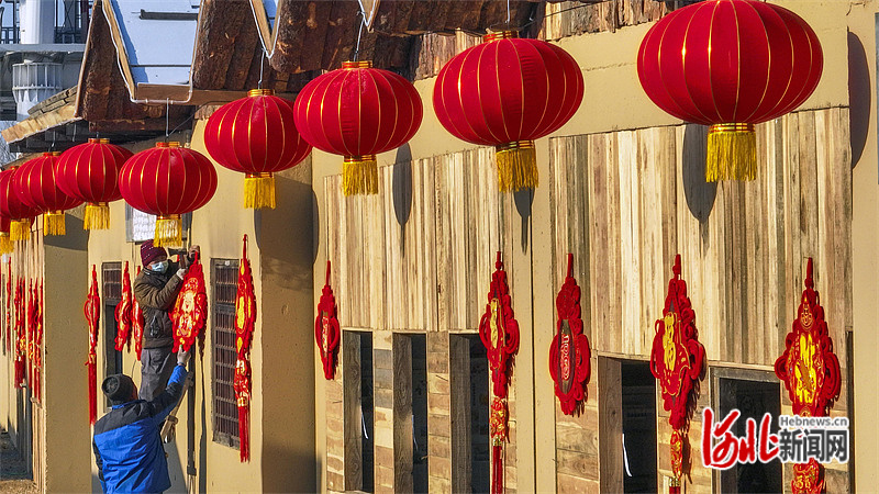 臨近春節(jié),河北省遵化市團(tuán)瓢莊鎮(zhèn)山里各莊景區(qū)一片忙碌景象,工人們加緊貼窗花、懸掛燈籠和福字等節(jié)慶飾品,為迎接春節(jié)游客做準(zhǔn)備。 通訊員劉滿(mǎn)倉(cāng)攝影報(bào)道