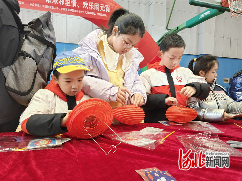 圖為路北區(qū)光明街道光明西里甲區(qū)社區(qū)活動現(xiàn)場,孩子們學(xué)習(xí)做花燈。通訊員張穎攝