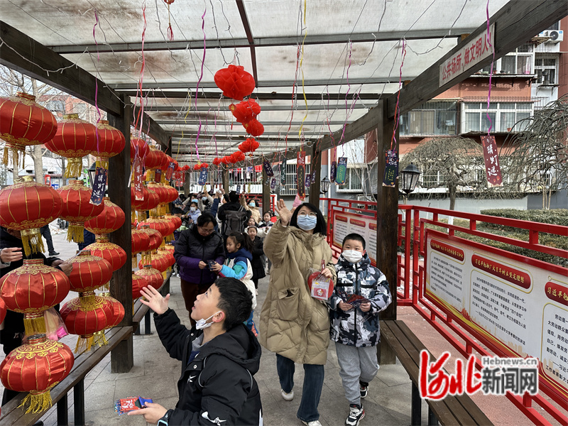 圖為路北區(qū)光明街道光明西里甲區(qū)社區(qū)活動現(xiàn)場,居民們聚在文化長廊猜燈謎。通訊員張穎攝