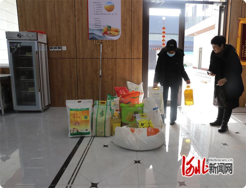 圖為愛心村民為孝老食堂捐贈米、油等物品。