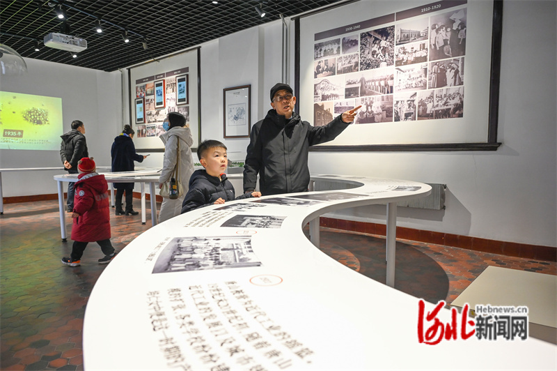 圖為培仁歷史文化街培仁教育記憶館內(nèi),一名游客帶著自己的孫子參觀,并講述歷史知識。郭寶強攝