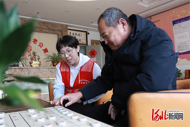 3月4日,唐山市豐南區(qū)胥各莊鎮(zhèn)的志愿者和慈恩養(yǎng)老院的老人互動聊天。