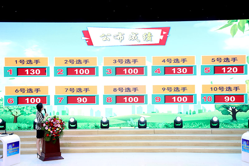 5月26日,在河北省隆堯縣融媒體中心演播大廳,主持人在公布參賽選手成績。