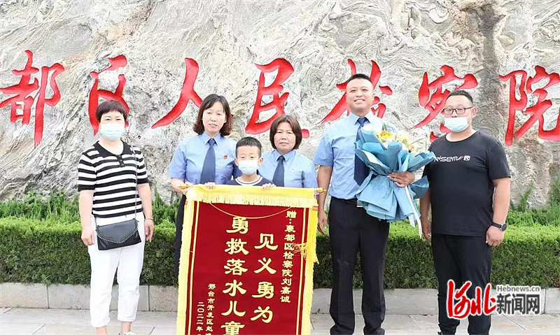 河北網(wǎng)訊(河北日報記者邢云)日前,一面錦旗和一捧鮮花送到邢臺市襄都區(qū)人民檢察院,幾名群眾眼含熱淚地緊握著干警劉嘉誠的手連聲道謝。原來,前不久,劉嘉誠和一名武警軍官潘玉坤以及熱心群眾,一起救下了一名意外落水兒童。救人后,劉嘉誠默默離開。家長幾經(jīng)打聽才特意找來表達謝意。