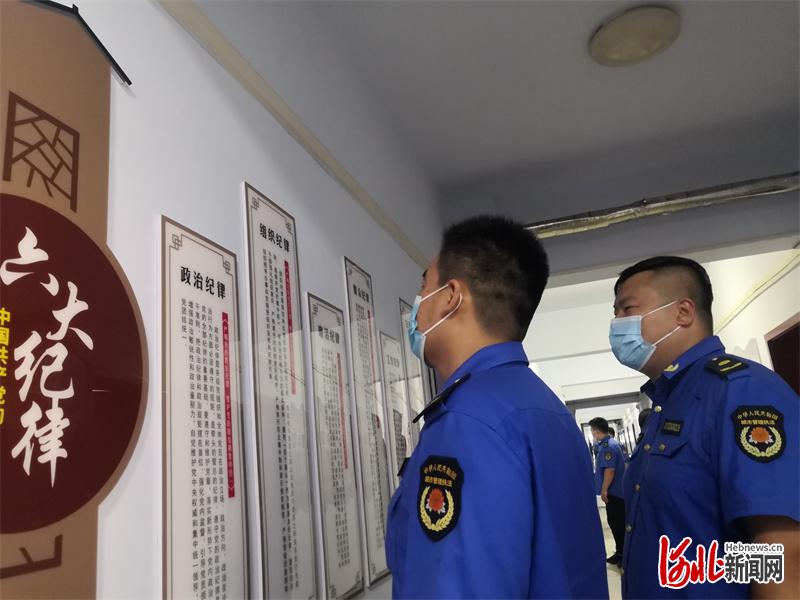 圖為邢臺(tái)市城管局建筑垃圾管理服務(wù)中心利用樓道打造的廉政文化長廊。